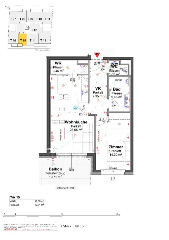 Die Top 15 ist eine 56 m², 2 Zimmerwohnung mit Terrasse und befindet sich im 1.OG des Hauses. Der Schnitt ist kompakt und alle Zimmer sind getrennt begehbar. Zur Verfügung stehen, ein Wohnzimmer mit offener Küche und Ausgang in einer ost-seitige Terrasse, 1 Schlaf-zimmer 1 Bad, eine separate Toilette sowie einen Abstellraum.