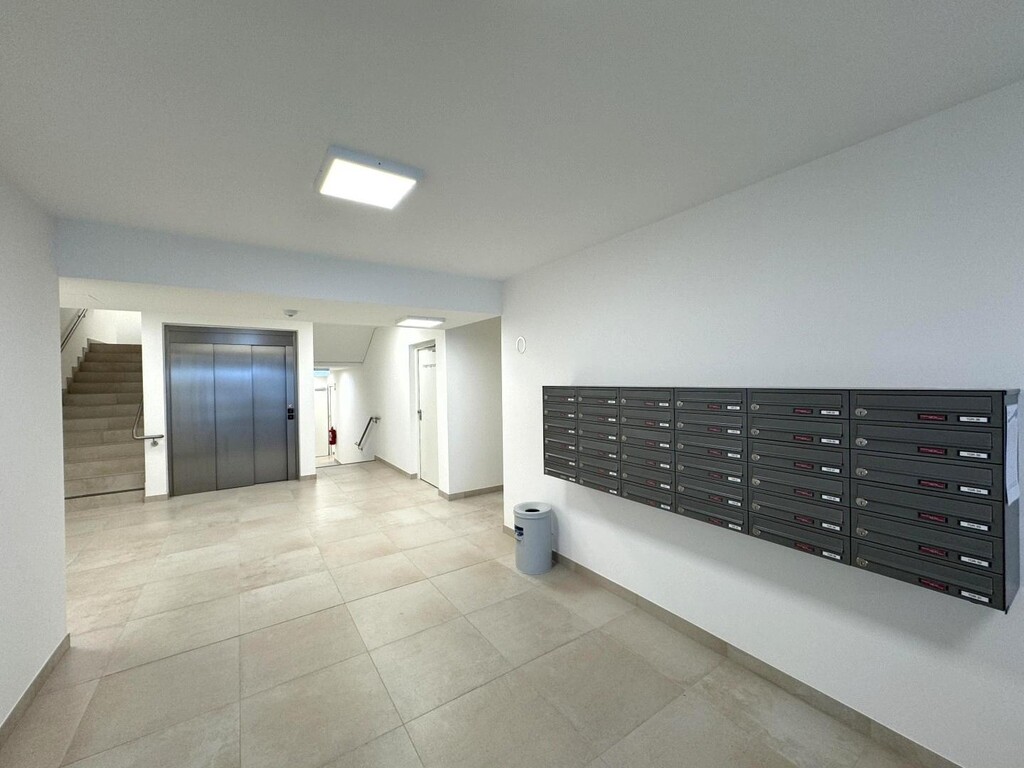 The interior fittings are of high quality, modern and focused on comfort and energy efficiency. The apartment has a security entrance door, underfloor heating and ceiling cooling with heat pump, photovoltaic system on the roof, triple glazed windows as well as electrically controlled Venetian blinds and sufficient sockets, internet and data connections.