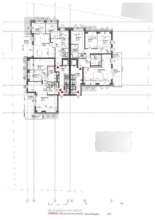 Die Top 105 ist eine 86 m², 3 Zimmerwohnung mit 12 m² Terrasse und befindet sich im 1. DG des Hauses. Der Schnitt ist sehr kompakt und effizient. Man kommt in der Wohnung in einen grosszügigen Flur mit viel Garderobenplatz. Auf einer Seite befinden sich ein Abstell-/Wirtschaftsraum, eine Toilette und das Bad mit Dusche, Badewanne und Toilette. Auf die andere Seite sind ein Schlafzimmer sowie das Wohnzimmer. Vom Wohnzimmer ist die 2 Schlafzimmer begehbar. Das Wohnzimmer ist grosszügig, hat eine offene Küche und Ausgang auf eine schöne Terrasse.