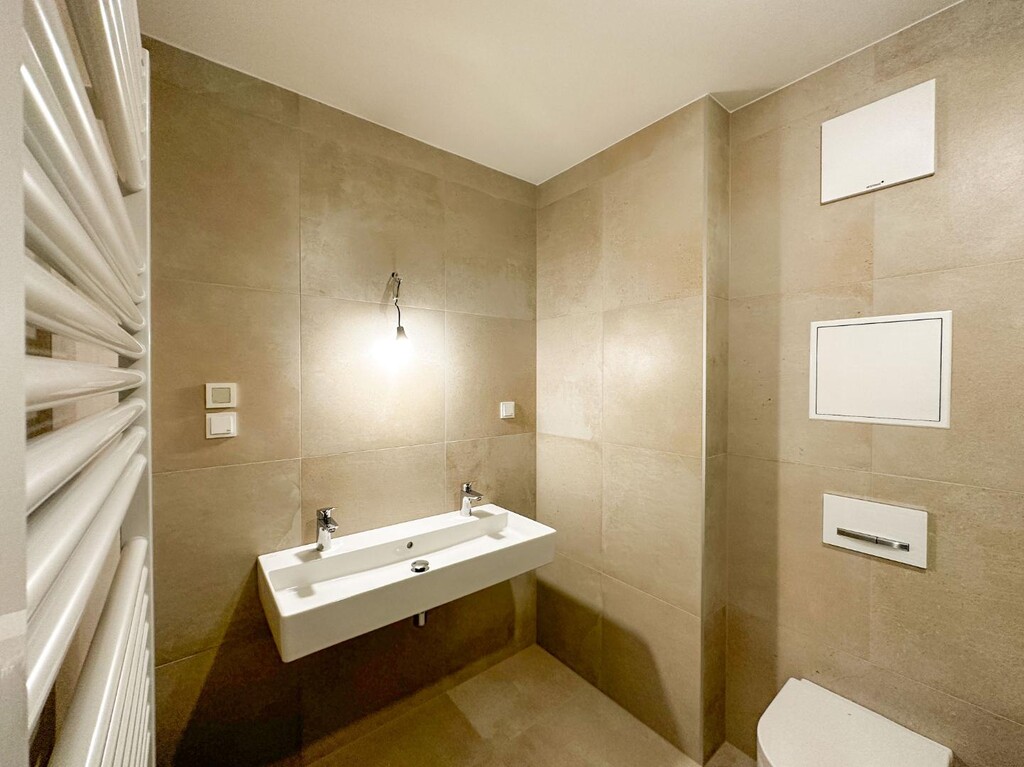 Die Ausstattung ist hochwertig, modern und auf Komfort und Energieeffizienz bedacht. Die Wohnung verfügt über eine Sicherheitseingangstür, Fussbodenheizung und Deckenkühlung mit Wärmepumpe, Photovoltaikanlage am Dach, dreifach verglaste Fenster sowie elektrisch steuerbare Raffstores und ausreichend Steckdosen, Internet- und Datenanschlüsse.
