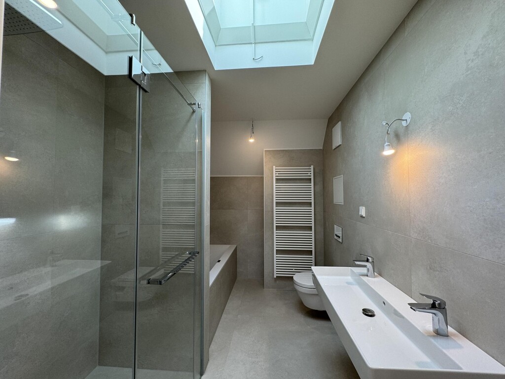 The equipment is high quality, modern and focused on comfort and energy efficiency. The apartment has a security entrance door, underfloor heating and ceiling cooling via the in-house heat pump, triple-glazed windows as well as electrically controlled Venetian blinds, sufficient sockets, internet and data connections and much more.