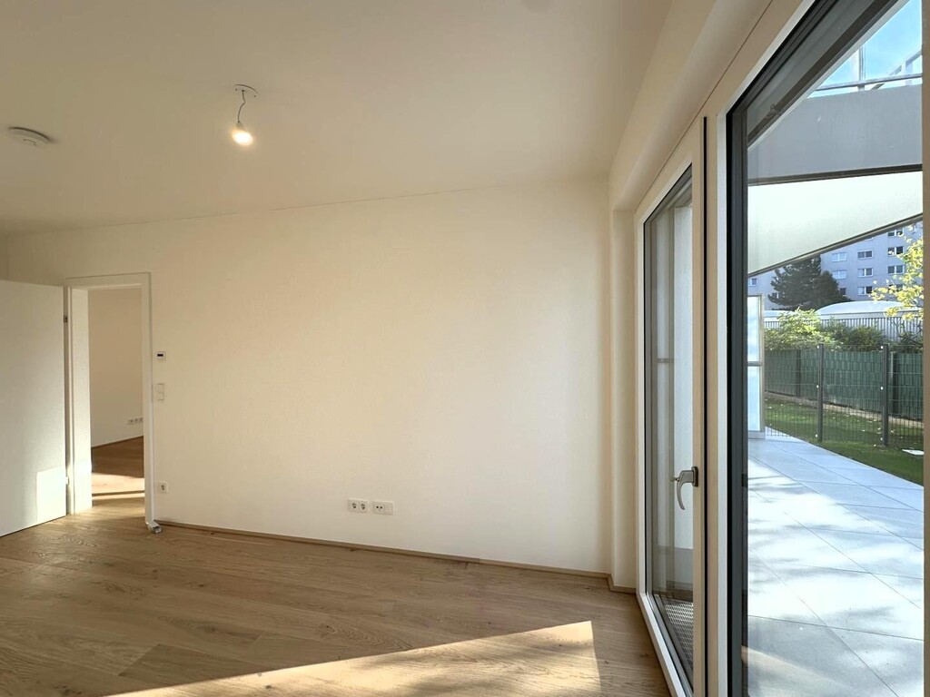 A small but fine 2-room garden apartment with thermal component activation is being offered for sale in a new, high-quality, low-energy residential building directly next to the U1 Leopoldau/Schererstrasse underground line. The apartment is currently being rented for a limited period of time until 31.12.2029. A new kitchen from IKEA with island and all kitchen appliances was installed in the apartment at the same time as the rental.