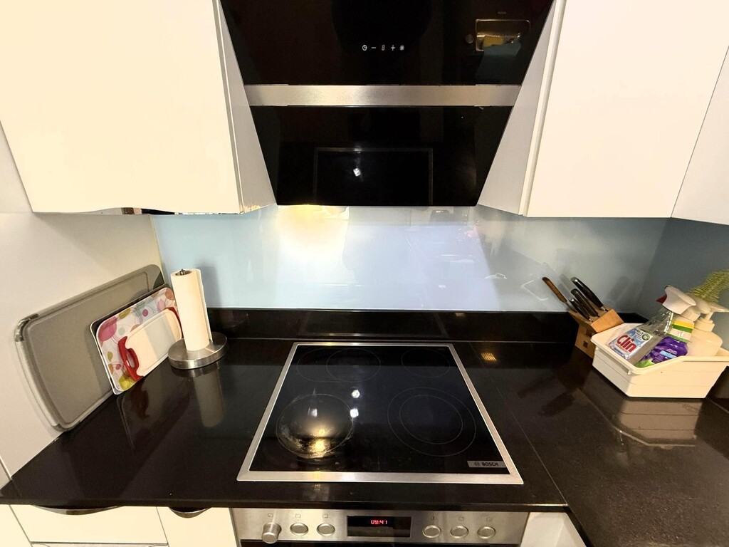 The kitchen, consisting of upper and lower units, is equipped with all Siemens appliances (4-burner hob, oven, extractor fan - convection, dishwasher, microwave etc.) and worktop lighting.) and worktop lighting.