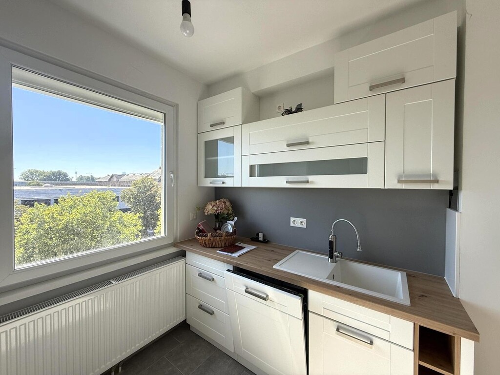 With a living area of 67.75 m², the apartment impresses with its highly efficient floor plan: two separately accessible bedrooms, a spacious living room, a modern entrance hall, a fully equipped kitchen, a bathroom with bathtub, and a separate toilet – all within just 67 m².