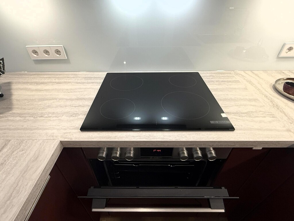 Equipped with a bathtub, washbasin, heated towel rack, washing machine connection and drain, as well as a large wall-mounted LED mirror provided by the owner. Additional bathroom furniture has been ordered and will follow shortly.