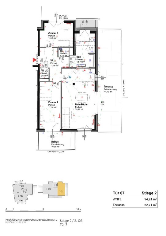 Die Top 207 ist eine 95 m², 3 Zimmerwohnung mit einer beeindruckenden Terrasse und be-findet sich im 2. OG des Hauses. Alle Zimmer sind getrennt begehbar. Zur Verfügung stehen, ein grosses Wohnzimmer mit offener Küche und Ausgang auf einer sehr grosse west-seitige Terrasse, ein Master-Schlafzimmer mit Platz für eine begehbarer Garderobe, ein weiteres Schlafzimmer, ein grosses Bad mit walk-in Dusche, Badewanne und Toilette, eine separate Toilette und ein Abstellraum.