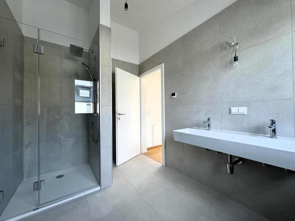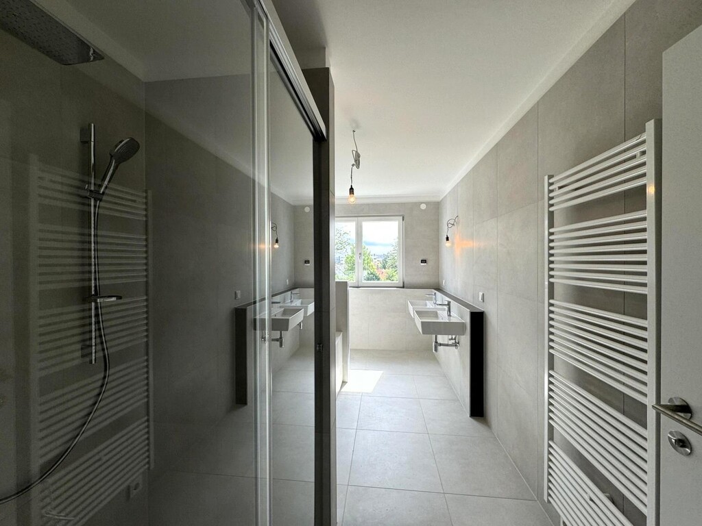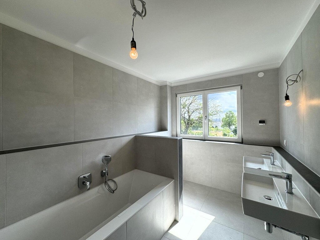 The house stands on own land is very spacious and very efficiently cut and full basement. Due to the slope, the basement becomes a full living space. Here is the living-room with open kitchen with exit on the terrace in the garden as well as the technical room, a toilet, a real cellar room and a pantry. On the first floor are a beautiful entrance area with adja-cent storage room, as well as a bathroom with bath, shower and toilet, 2 large bedrooms, one of them with walk-in closet. The upper floor offers space for another bathroom with toilet and shower, a storage room and a large bedroom with exit on a beautiful terrace, wonderfully divided into a sleeping and home office area.