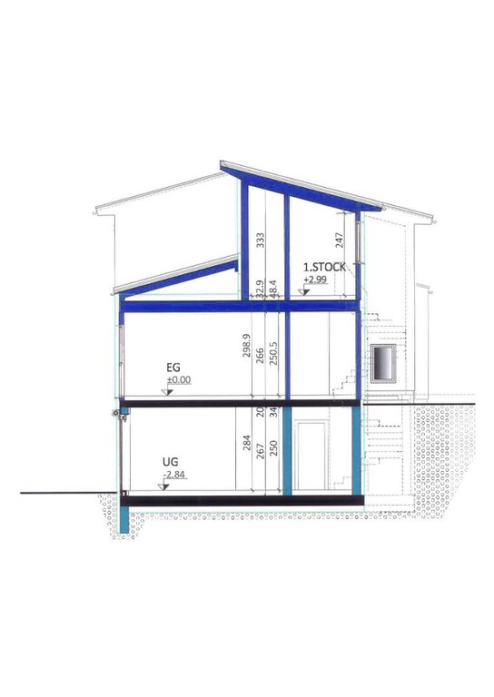 Das Haus steht auf Eigengrund ist sehr grosszügig und sehr effizient geschnitten und voll unterkellert. Durch die Hanglage wird der Keller zum vollen Wohnraum. Hier befindet sich die Wohnküche mit Ausgang auf der Terrasse in den Garten sowie der Technikraum, eine Toilette, ein echter Kellerraum und ein Speis. Im Erdgeschoss sind einen schönen Eingangsbereich mit angrenzendem Abstellraum, sowie ein Bad mit Badewanne, Dusche und Toilette, 2 grosse Schlafzimmer, eines davon mit begehbarer Garderobe. Das Obergeschoss bietet Platz für ein weiteres Bad mit Toilette und Dusche, ein Abstellraum sowie ein grosses Schlafzimmer mit Ausgang auf einer schönen Terrasse, wunderbar geteilt in einen Schlaf und Homeofficebereich.