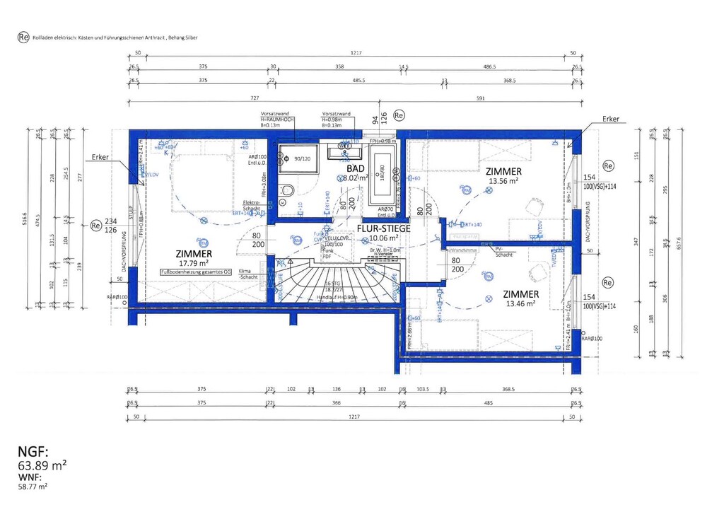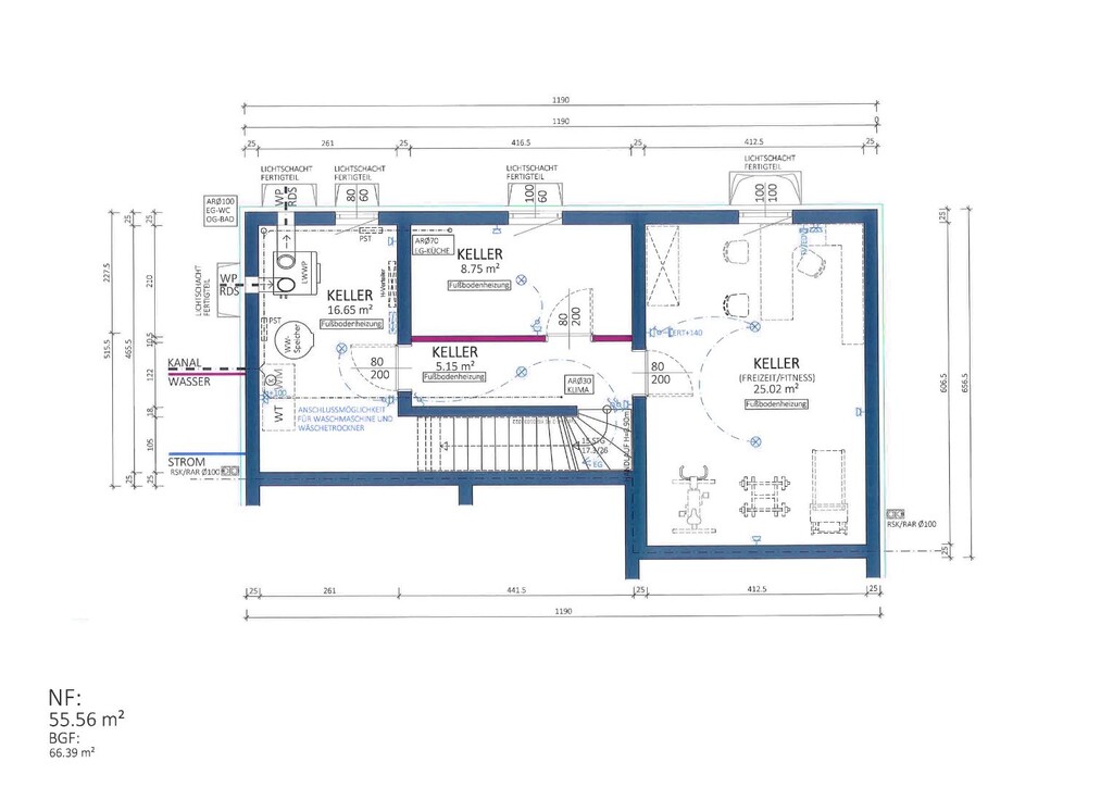 The fittings are high-quality, modern and designed with comfort and energy efficiency in mind. The house has underfloor heating with a heat pump, air conditioning, its own PV system, a high-quality aluminum door, underfloor heating, triple-glazed windows and wooden interior stairs. Fitting changes are still possible depending on the progress of con-struction.