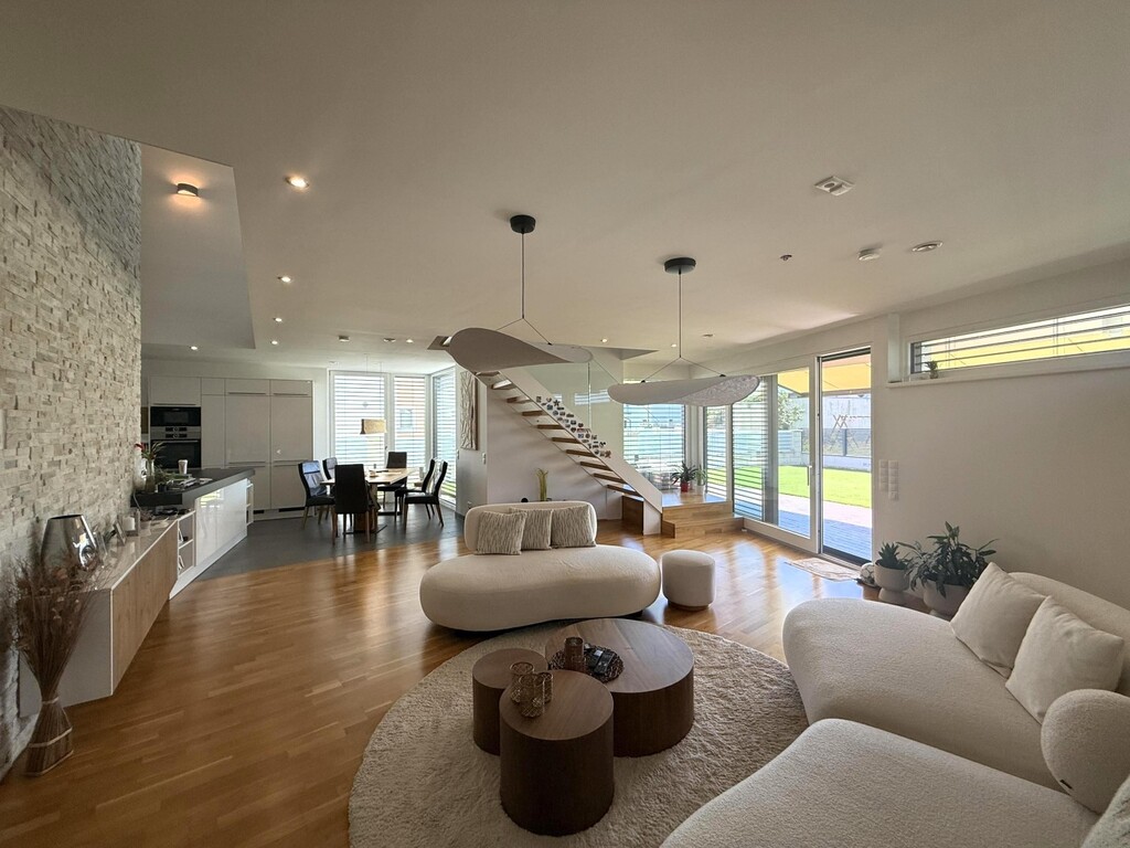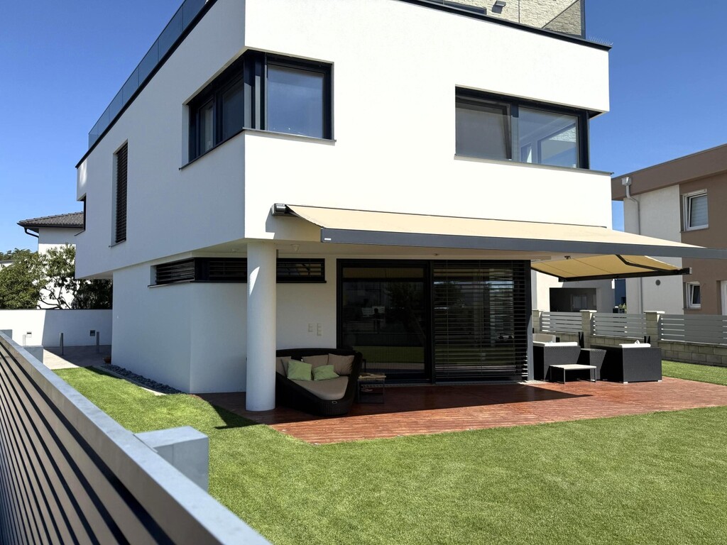 Diese im Jahr 2015 errichtete Architekten-Villa in massiver Stahlbeton-Bauweise vereint modernes Design, höchste Bauqualität und ein durchdachtes Wohnkonzept. Auf einem 398 m² grossen Eigengrund gelegen, bietet sie 243,46 m² Wohnfläche sowie insgesamt 364,79 m² Nutzfläche, verteilt auf vier Ebenen inklusive hochwertigem Wohnkeller mit Tageslicht.