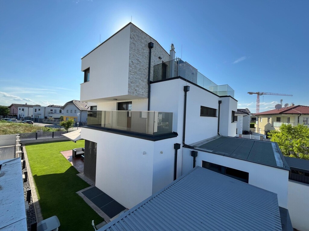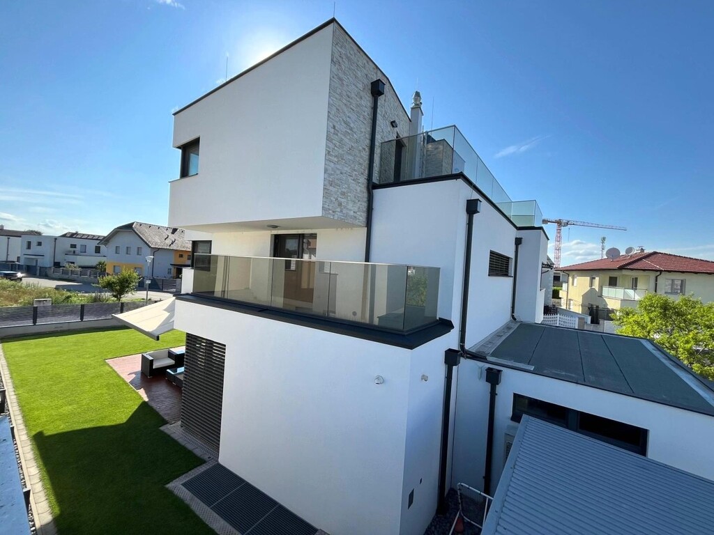 This architect-designed villa, built in 2015 using solid reinforced concrete construction, combines modern design, top-quality craftsmanship, and a well-thought-out living concept. Located on a 398 m² private plot, it offers 243.46 m² of living space and a total of 364.79 m² of usable space, spread across four levels, including a high-quality daylight basement.