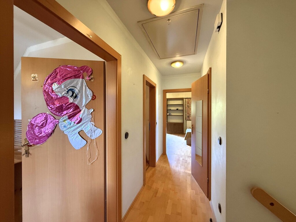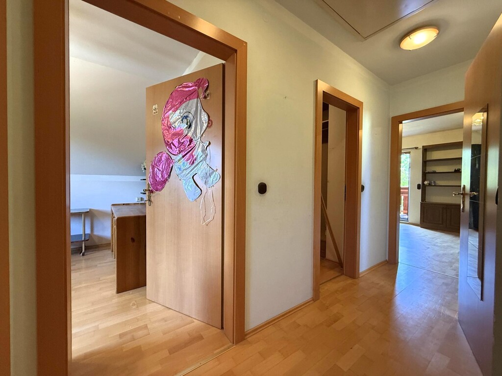 wo sich zwei weitere Schlafzimmer, eines davon, das Masterbed mit einem kleinen aber romantischen Holzbalkon in den wunderschön begrünten Eigengarten, ein Büro, wo einst eine kleine Küche war (die Anschlüsse sind noch vorhanden, im Keller sogar die alten Küchenmöbel abgestellt) , eine mit Massschränke ausgestattete begehbare Garderobe und ein Badezimmer mit Toilette befinden.