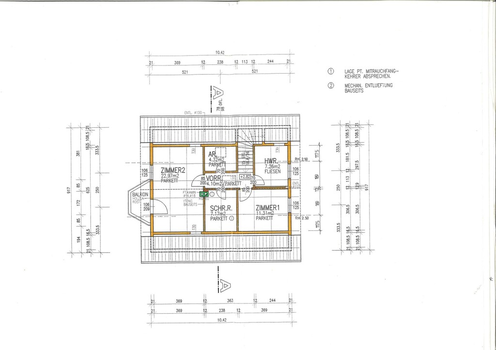 57,13 m² grosse Ober- bzw. Dachgeschoss,