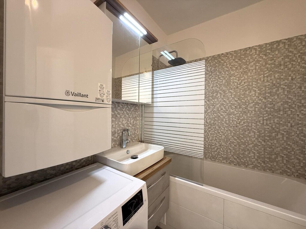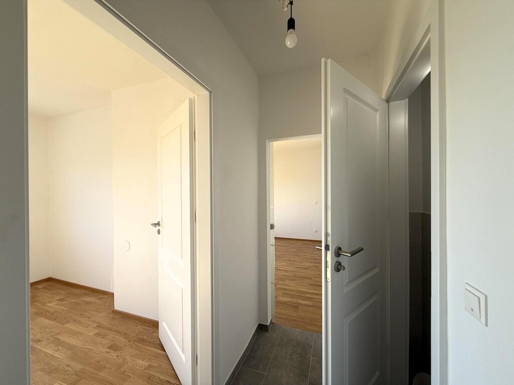 Mit einer Wohnfläche von 67,75 m² überzeugt die Wohnung durch einen besonders effizienten Grundriss: zwei getrennt begehbare Schlafzimmer, ein grosszügiges Wohnzimmer, ein moderner Vorraum, eine voll ausgestattete Küche, ein Badezimmer mit Badewanne und eine separate Toilette, alles auf nur 67 m².